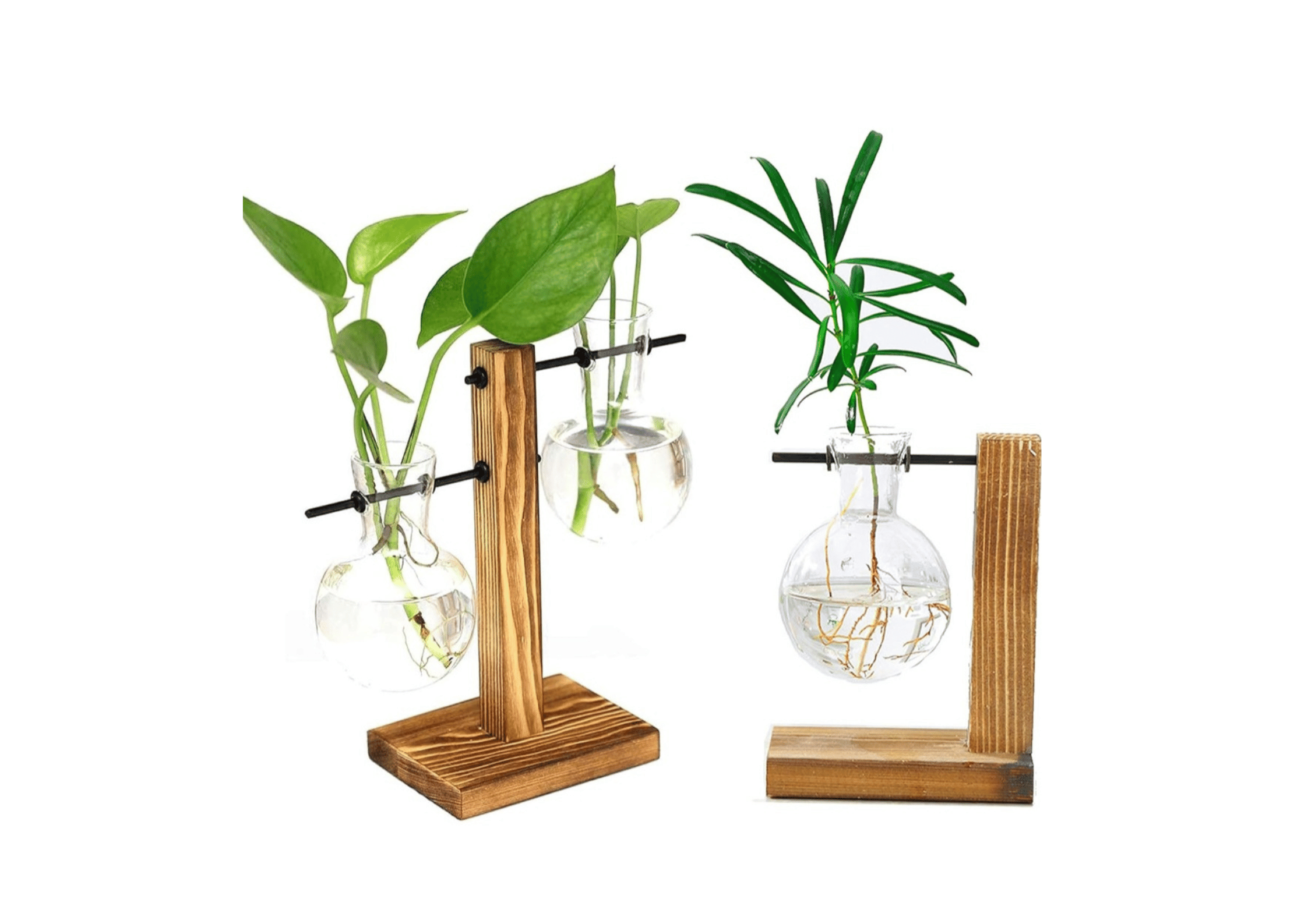 A hidroponia é a técnica de cultivar plantas sem solo, onde as raízes recebem uma solução nutritiva balanceada que contém água e todos os nutrientes essenciais ao desenvolvimento da planta. Na hidroponia as raízes podem estar suspensas em meio líquido, ou seja, você poderá manter suas plantas preferidas bem pertinho de você, em casa ou no trabalho, estes vasos com apoios darão aquela sensação de contato com a natureza.